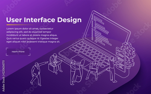 Wall mural : Development of the user interface - people work in a team and achieve the goal - launch a new product