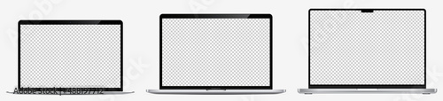 The watermark will not be included on Wall mural.: Device screen mockup - realistic open laptop in three varieties with blank screen for you design - vec