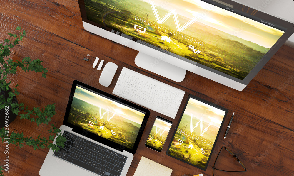 The watermark will not be included on Wall mural.: Devices collection top view with cms theme template website