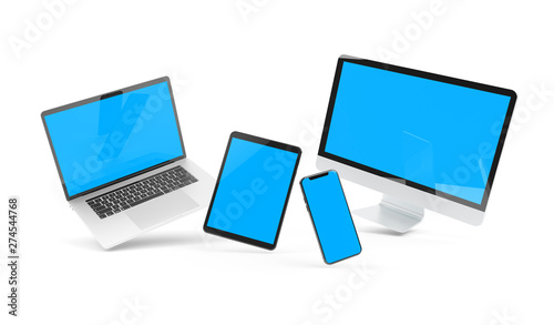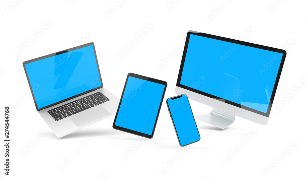 The watermark will not be included on Wall mural.: Devices floating on white background 3d rendering