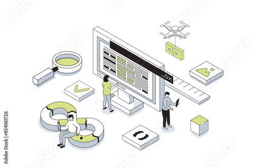 Wall mural devops 3d isometric concept in outline isometry design for web. people communicating in team and col - Wall murals Wall mural devops 3d isometric concept in outline isometry design for web. people communicating in team and col - Wall murals