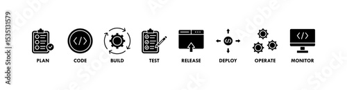 Wall mural devops banner web icon vector illustration concept for software engineering and development with an  - Wall murals Wall mural devops banner web icon vector illustration concept for software engineering and development with an - Wall murals