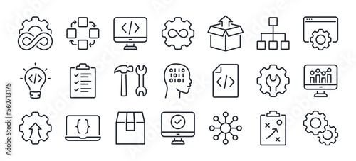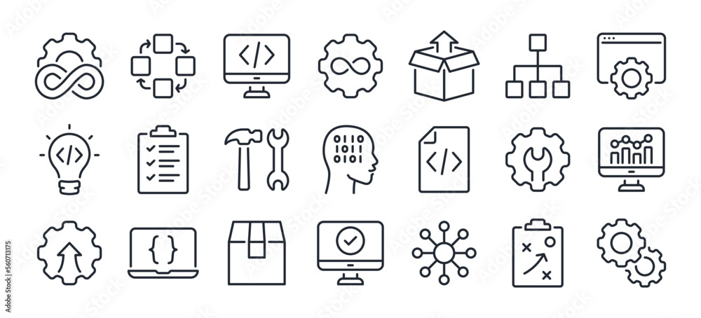 Wall mural : Devops methodology and software development concept editable stroke outline icons set isolated on wh
