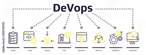 Wall mural : Devops web banner icon vector illustration design concept for software engineering and development w