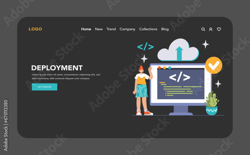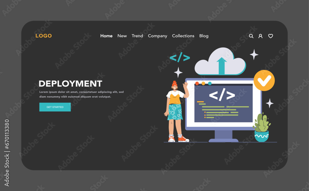 Wall mural devops web banner or landing page dark or night mode. software development and it operations life cy - Wall murals Wall mural devops web banner or landing page dark or night mode. software development and it operations life cy - Wall murals