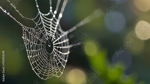 The watermark will not be included on Wall mural.: Dew-covered spider web in the early morning light