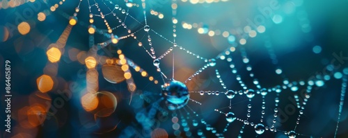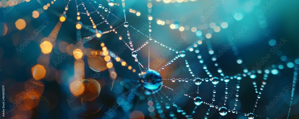 Wall mural : Dew Drops on Spider Web with Bokeh