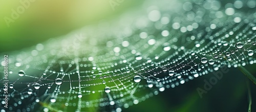 The watermark will not be included on Wall mural.: Dew on spider s web with copyspace for text