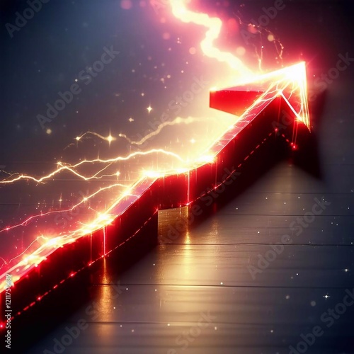 Wall mural digital 3d red arrow pointing up against colorful night sky background symbolizes growth dynamics, i - Wall murals Wall mural digital 3d red arrow pointing up against colorful night sky background symbolizes growth dynamics, i - Wall murals