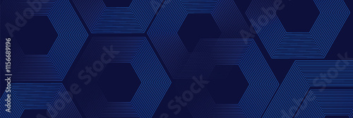 Wall mural : Digital abstract background with hexagon lines on blue background - futuristic digital network line a