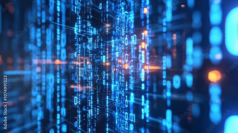 The watermark will not be included on Wall mural.: Digital abstract circuit with blue binary code, high-tech and futuristic, detailed and complex, sens