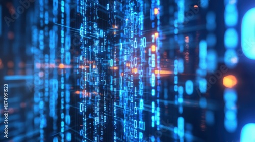 Wall mural digital abstract circuit with blue binary code, high-tech and futuristic, detailed and complex, sens