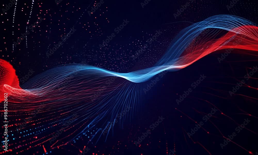 Wall mural digital abstract red and blue dots and lines isolated on a dark background