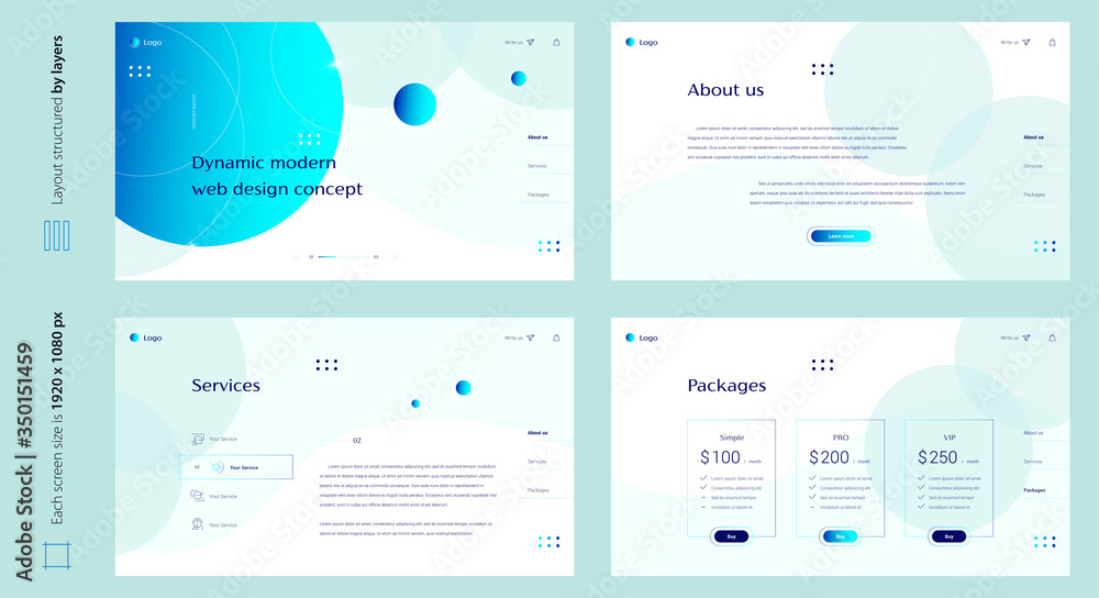 Digital abstract volume white and blue design four screen template with round shapes - stylish customWall mural