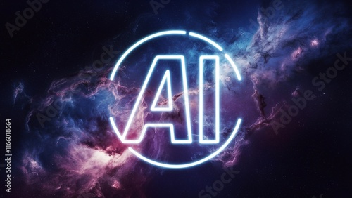 Wall mural digital ai symbol against colorful night sky - generative a - Wall murals Wall mural digital ai symbol against colorful night sky - generative a - Wall murals