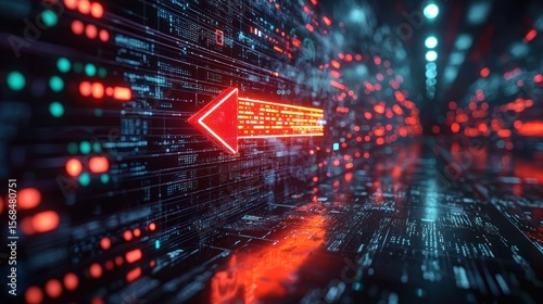 The watermark will not be included on Wall mural.: Digital arrow pointing forward through a data network -
