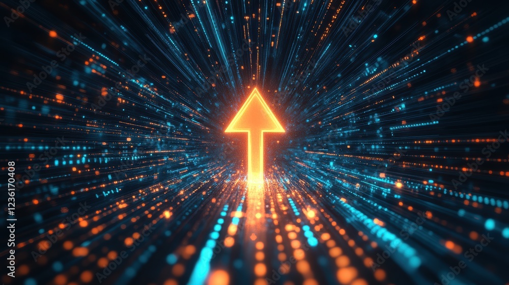 Wall mural : Digital arrow symbolizing growth emerging from vibrant data streams, illustrating concepts of progre