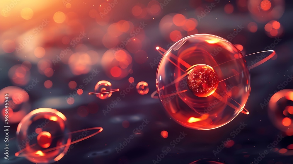 Wall mural digital art abstract representation of an atom with a red glowing nucleus and orbiting electrons. - Wall murals Wall mural digital art abstract representation of an atom with a red glowing nucleus and orbiting electrons. - Wall murals