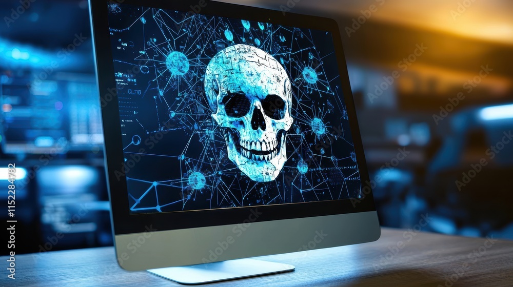 Wall mural digital art creation of a skull graphic on computer screen modern office visual design tech environm - Wall murals Wall mural digital art creation of a skull graphic on computer screen modern office visual design tech environm - Wall murals