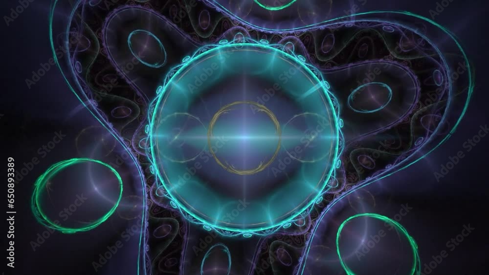 The watermark will not be included on Wall mural.: Digital art of abstract geometric shapes and lines of different colors on black background