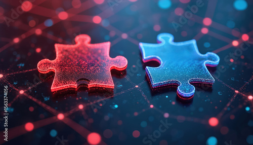 Wall mural digital art of api integration concept. two puzzle pieces interlock against futuristic abstract tech - Wall murals Wall mural digital art of api integration concept. two puzzle pieces interlock against futuristic abstract tech - Wall murals