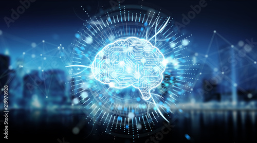 Wall mural digital artificial intelligence icon hologram 3d rendering