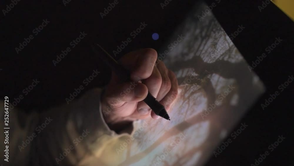 Wall mural digital artist photo designer edit his artwork on interactive tablet computer in dark home studio. f - Wall murals Wall mural digital artist photo designer edit his artwork on interactive tablet computer in dark home studio. f - Wall murals