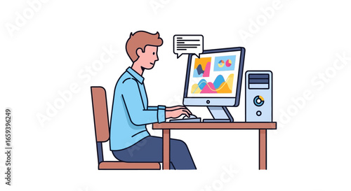 Wall mural digital artist working at computer creating visual designs and graphics in his office or home studio