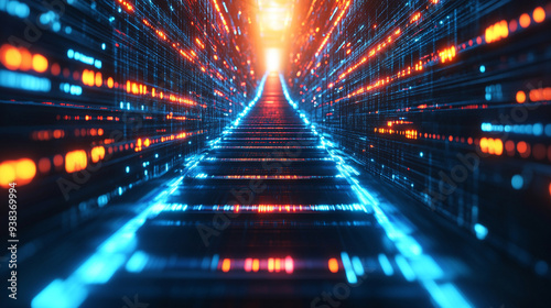 Wall mural : Digital background featuring a sleek ladder reaching towards a glowing, abstract horizon, symbolizin