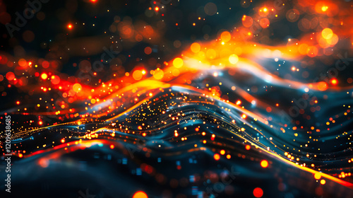 Wall mural : Digital background featuring an abstract, digital space with glowing lights and futuristic elements
