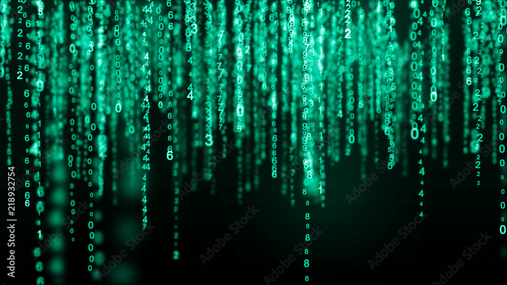Wall mural digital background green matrix. binary computer code. hacker concept. 3d rendering - Wall murals Wall mural digital background green matrix. binary computer code. hacker concept. 3d rendering - Wall murals