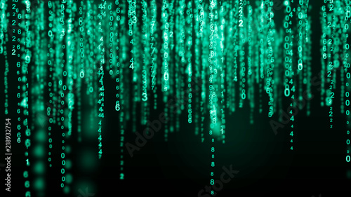 Wall mural digital background green matrix. binary computer code. hacker concept. 3d rendering