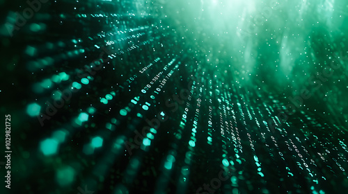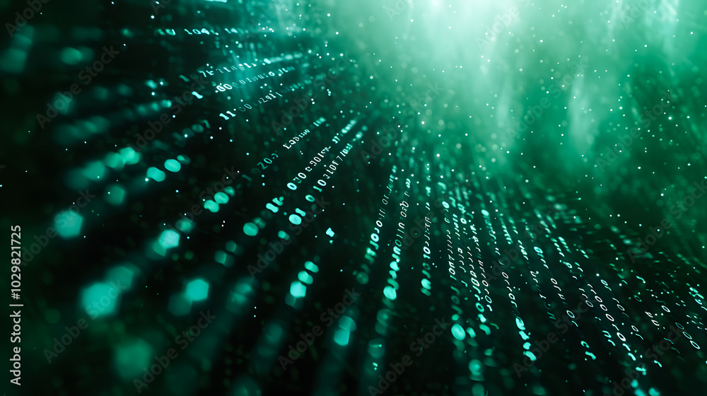 Wall mural digital binary code data streaming on a dark, greenish abstract background, reflecting the concept o - Wall murals Wall mural digital binary code data streaming on a dark, greenish abstract background, reflecting the concept o - Wall murals