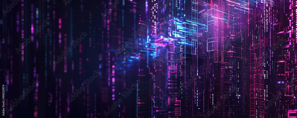The watermark will not be included on Wall mural.: Digital binary code flows in streams, symbolizing data, cyber security, and information technology -