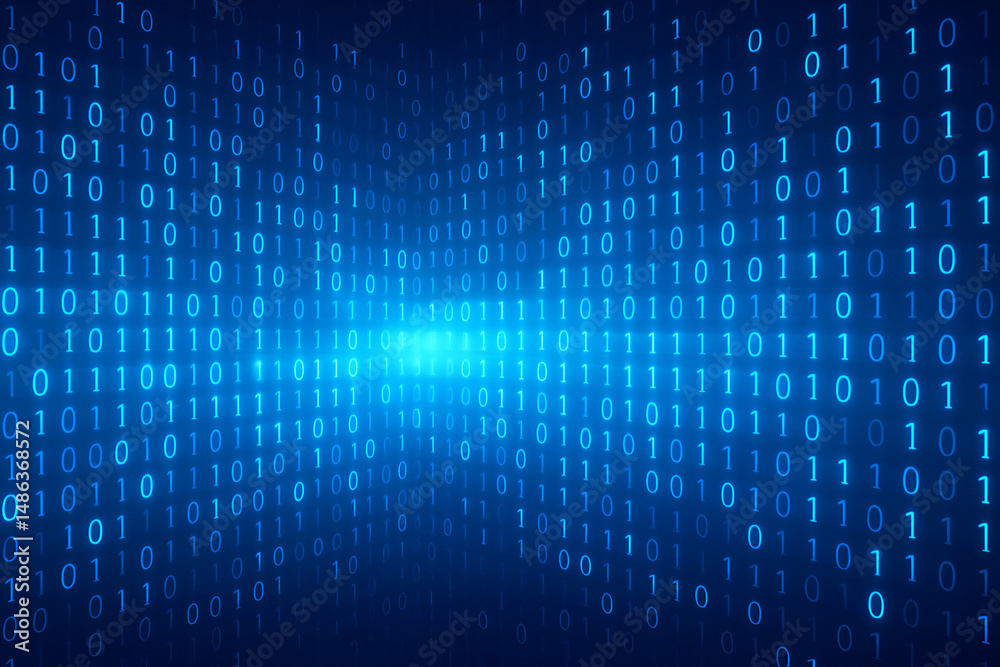 Wall mural digital binary code in a blue glowing background. - Wall murals Wall mural digital binary code in a blue glowing background. - Wall murals