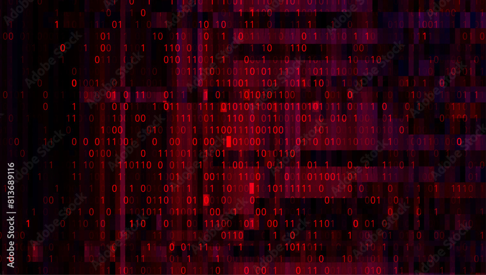 Wall mural digital binary code on dark red background. data breach - Wall murals Wall mural digital binary code on dark red background. data breach - Wall murals