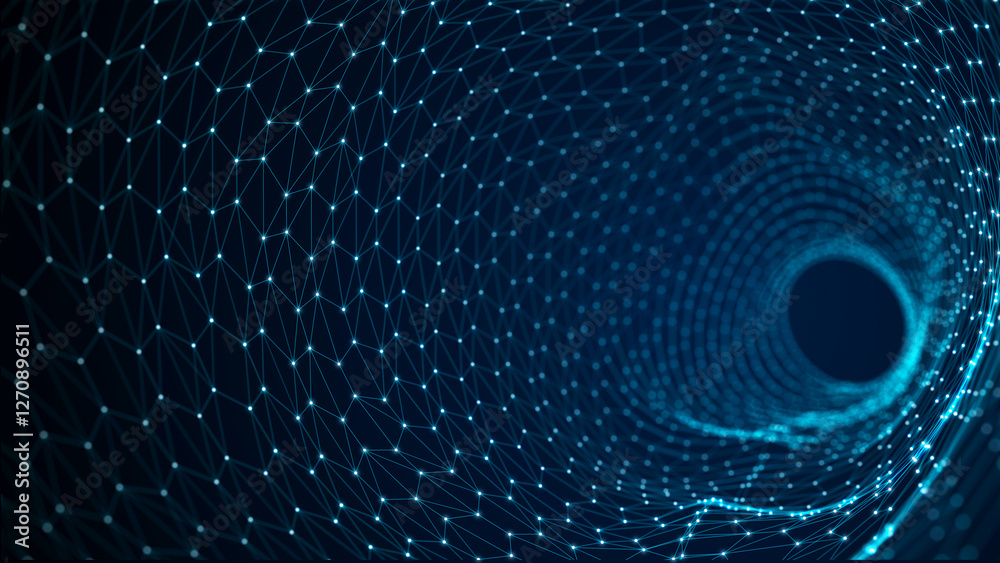 Wall mural digital binary data tunnel. abstract connection of dots on dark background. concept of network. 3d - Wall murals Wall mural digital binary data tunnel. abstract connection of dots on dark background. concept of network. 3d - Wall murals