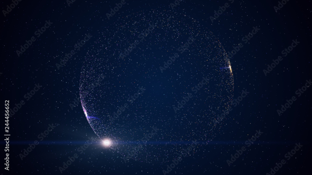 Wall mural : Digital blue abstract background with sparkling wave particles and areas with deep depths, circular