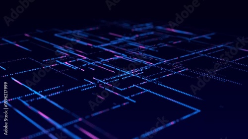 Wall mural digital blue background of particles. abstract futuristic illustration. big data visualization. tech