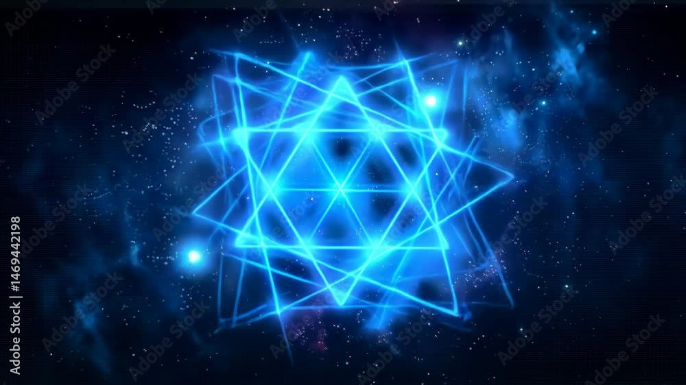 Wall mural digital blue glowing triangle geometric shape in dark space. futuristic technology background with n