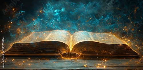 The watermark will not be included on Wall mural.: Digital book of the future symbolizing wisdom knowledge and modern understanding through a magical p
