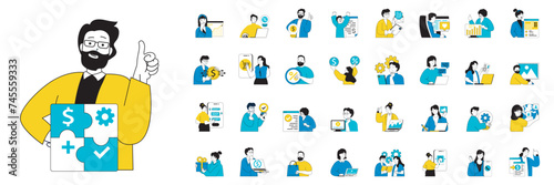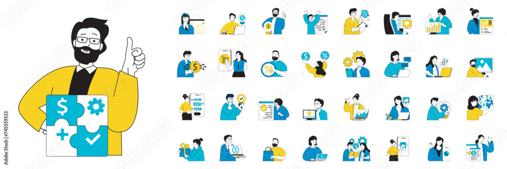 Wall mural digital business concept with character situations mega set in flat web design. bundle of scenes peo