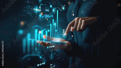 The watermark will not be included on Wall mural.: Digital business development chart with interactive elements