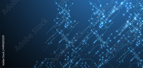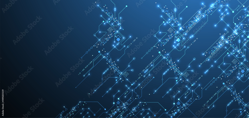 Wall mural : Digital circuit visualization vector background - blue board pattern with interconnected lines, nodes