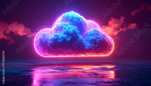 Wall mural : Digital cloud computing concept with blue light energy and motion pattern background and glowing clo