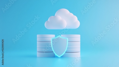 Wall mural : Digital cloud storage concept with cloud and shield symbolizing data security in vibrant blue backgr