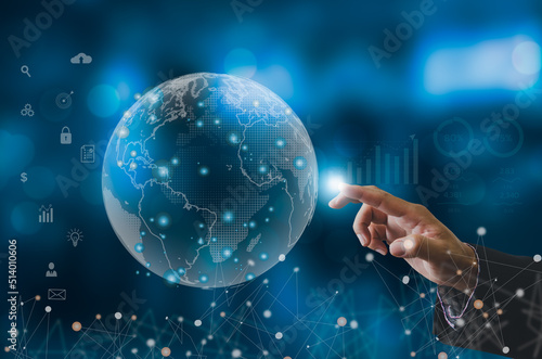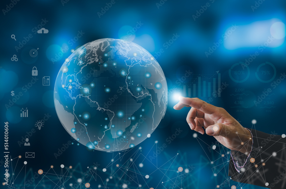 Wall mural digital communication and virtual technology concept web 3.0.hand touch globe internet.business conc