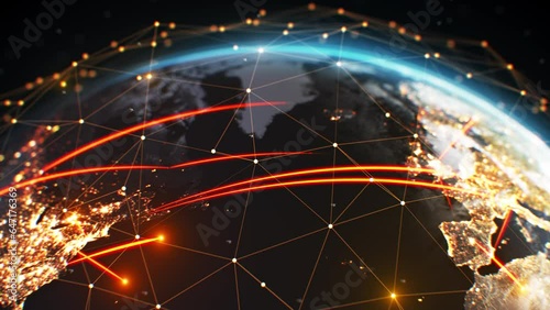 Wall mural digital connections over earth in seamless 3d animation. global computer network covering planet loo - Wall murals Wall mural digital connections over earth in seamless 3d animation. global computer network covering planet loo - Wall murals