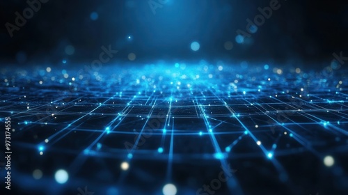 Wall mural : Digital connectivity with abstract blue technology background and cyber network grids
