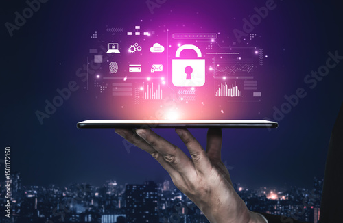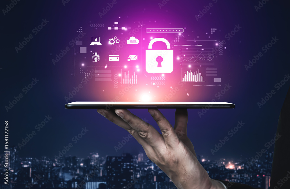 Wall mural digital cyber security lock system highlighting data security encryption, cyber password protection,